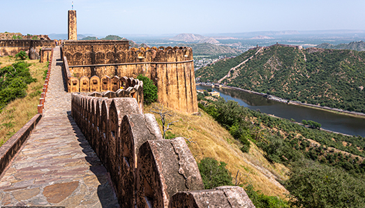 Jaigarh Fort, perched on the Aravalli hills in Jaipur, is a majestic fortress known for its massive cannon, Jaivana, and stunning views of the surrounding landscape.
